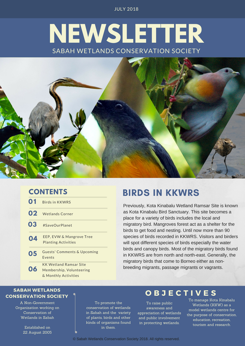 July newsletter is coming! Find out about the variety of birds at KKWRS. Also, we discuss the environmental issue happen on our planet and all the activities held in the month of July.